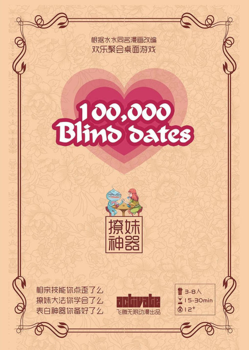 100,000 Blind Dates is based on Chinese research on the experience of one hundred thousand blind dates. The game uses the keywords from the research to help people talking on blind dates.