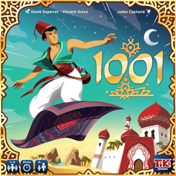 In 1001, you take on the role of the spirits of the four winds who will guide Aladdin's flying carpet, sometimes to aid him and sometimes to hinder him as the spirits of the wind can be capricious. Players work either solo or in teams, but with individual scores in either case and with points being scored in two ways:
