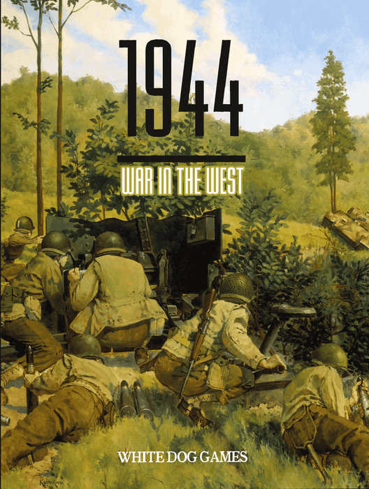 1944: War in the West is a beer-and-pretzels, two-player game based upon the Allied liberation of Western Europe in 1944 - 45. One player controls the Allied forces, the other the Germans. Command and supply play an important role in the game as it did in the historical conflict. The geographic scope of the game is from Cherbourg, France to Vienna and from Arnhem to Florence, Italy.