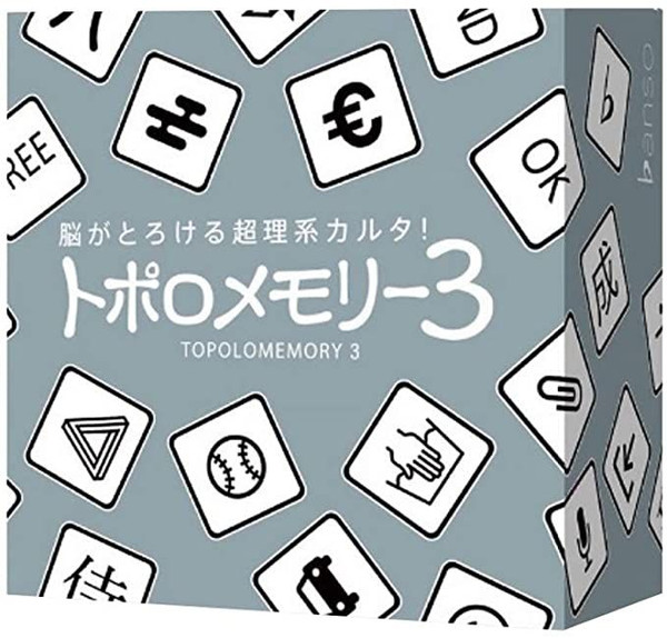 ãããã¡ã¢ãªã¼3 (Topolomemory 3) is a stand-alone expansion to ãããã¡ã¢ãªã¼ (TOPOLOMEMORY). It follows the same gameplay but introduces even more complex shapes, including English words and detailed images. The game also has an improved quality cardstock to the original edition. It can be played alone, or mixed in with Topolomemory, and/or ãããã¡ã¢ãªã¼ï¼ (Topolomemory 2).
