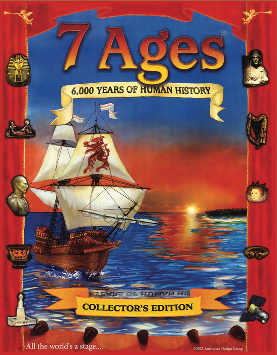 7 Ages: the Collector's edition includes 67 new civilisation cards, 165 in total. There are counters for 6 new empires, 21 in total, allowing up to 7 players to control 3 empires each, as you vie for a peaceful prosperous planet (under your benign control naturalich).