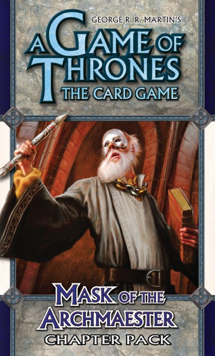 Mask of the Archmaester, the fifth monthly Chapter Pack in the Secrets of Oldtown cycle of expansions for A Game of Thrones: The Card Game, introduces 60 cards - three copies each of 20 never-before-seen locations, attachments, characters, events, and plots to aid your A Game of Thrones deckbuilding goals. This Chapter Pack features more Chain attachments as well as more diverse and surprising events and support for the ever-deepening Maester trait.