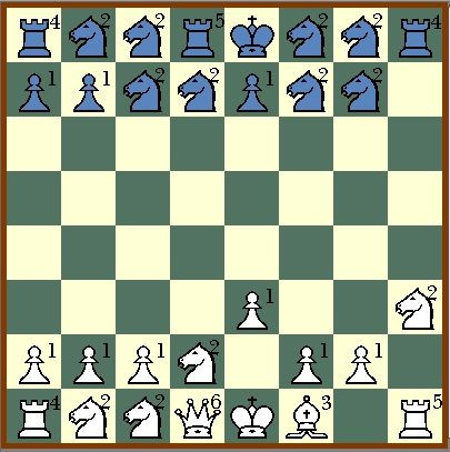 A stack-based game where each stack size correspond to a different Chess piece. Since stacks can share pieces, that means that powers can be transferred among adjacent friendly stacks. Only the King has a special non-stack royal status.