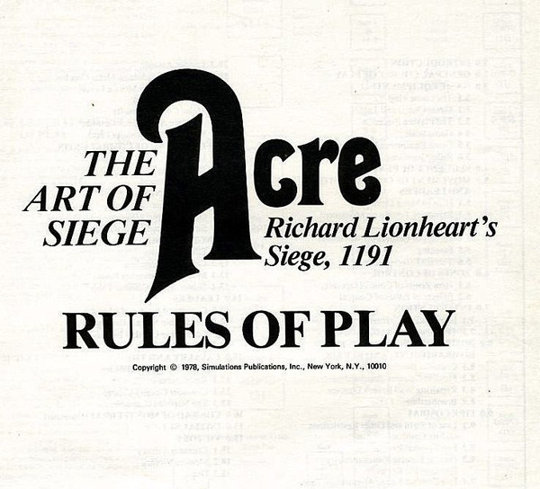 Acre simulates a crucial battle in the centuries-long war called the Crusades. The port city of Acre was considered key to the possession of nearby Jerusalem. In 1191, after a siege of almost three years, Acre fell to the Christian Crusaders under Richard the Lion Hearted, King Philippe of France, and King Guy of Jerusalem.