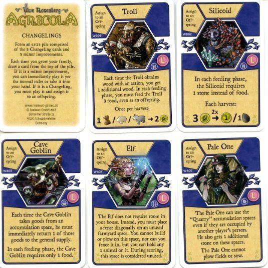 These 5 cards are to be mixed with 5 other small improvements to form an extra stack. Upon family growth, you draw one of these cards and if it is a changeling, attach it to the new worker.