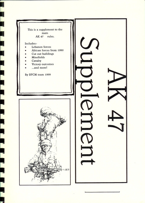 This is a supplement to the AK47 Republic miniature wargames rules providing extensions to the standard rules (cavalry, off table artillery, ambush, collateral, victory conditions, APCs, unarmed militia, night actions, minefields, boats and AA) along with rules for using AK47 for the war in Lebanon and Africa in the 1990s.