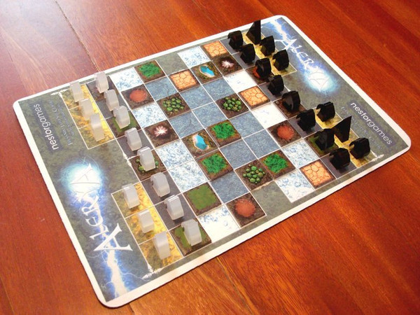 Alerya is an Essentia derivative by the same designer, that uses a different board, new terrain tiles and magic relics.