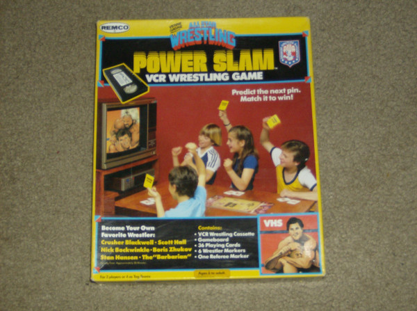 Players watch clips of wrestling matches from the old AWA league attempting to play a card that matches the move about to happen (there's a 3 second delay to allow players to choose which card to play)