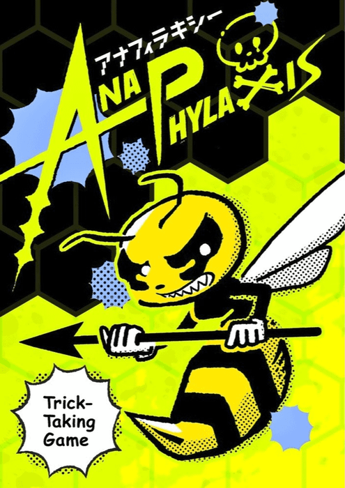 AnaPhylaxis is a trick-taking game where players must follow suit, navigate shifting trump interactions, and balance risk through a limited-use Pass mechanic. With a 28-card deck featuring duplicated high-value bees, players aim to win point cards without duplicating colors and numbers. Each round allows two critical Passes to avoid dangerous tricks, while a Pokémon-style weakness system lets certain suits beat others depending on the lead. Hands are slightly manipulated through card-passing, and the game’s fast knockouts and tactical sacrifices ensure that every decision could be fatal or victorious. The player with the highest total after several brutal rounds wins.
