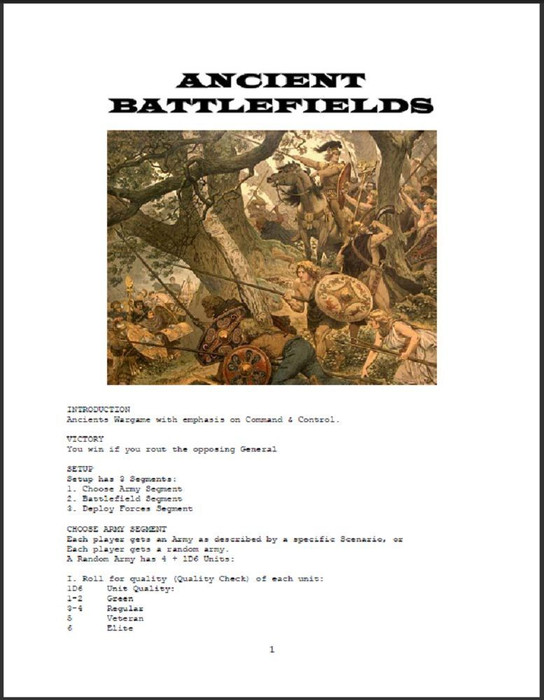 “Ancients Wargame with emphasis on Command & Control. Victory: You win if you rout the opposing General.”