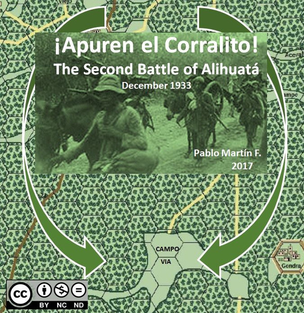 Apuren el Corralito! is a two player print and play, free game depicting the climactic battle of 2nd Alihuatá (Dec. 1933), during the Chaco War between Paraguay and Bolivia (1932-35), which ended with the surrender of the bulk of the Bolivian army in a clearing of the “chaco” bush known as Campo Vía, and resulted in the first truce in the war.