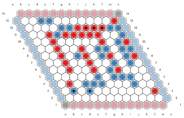 Objective: Connect your two designated sides, Top and Bottom for Black and Left and Right for White with an unbroken chain of pieces.