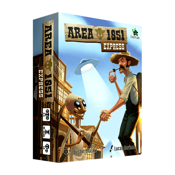 Area 1851: Express combines card drafting and set collection in the Wild West, where aliens have landed and are trading technology with the local natives and settlers to create out-of-this-world gadgets with comical modifications that are sure to bring lots of laughter to your game night.