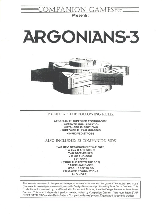 This is an expansion for the game Star Fleet Battles Captain's Edition. More exactly it add more ships and details to the Argonian race introduced in Argoninan 1.