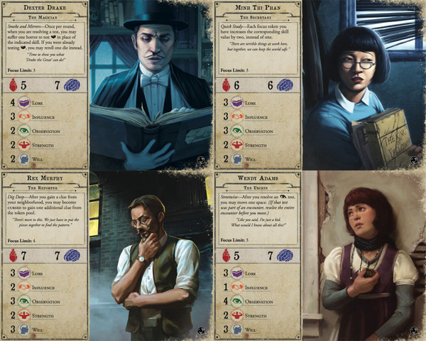 Recursive Echoes is a print-and-play expansion for Arkham Horror that re-imagines four familiar investigators from the board game’s core set. These “echo” investigators have been re-designed with new abilities and starting assets to further explore the unique ways these characters pursue their goals and face the growing chaos that challenges Arkham and the rest of the Miskatonic River Valley.
