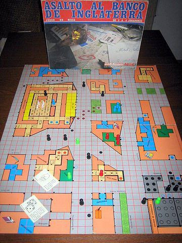 The are 4 small banks and a big one: "The Bank of England". The thieves not only have to steal the money from the safe, they also have to be able to escape and bring the money to their hideout. If the police catches them, the money returns to the bank.