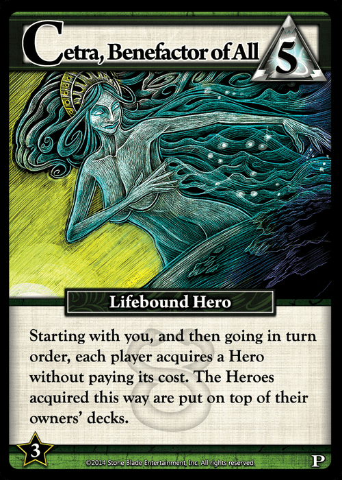 Starting with you, and then going in turn order, each player acquires a Hero without paying its cost. The Heroes acquired this way are put on top of their owner's deck