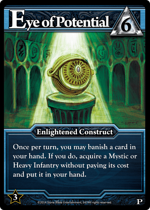Once per turn, you may banish a card in your hand. If you do, acquire a Mystic or Heavy Infantry without paying its cost and put it in your hand.
