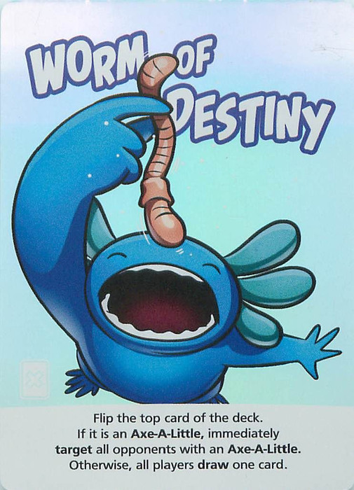 "Flip the top card of the deck. If it is an Axe-A-Little, immediately target all opponents with an Axe-A-Little. Otherwise, all players draw one card."