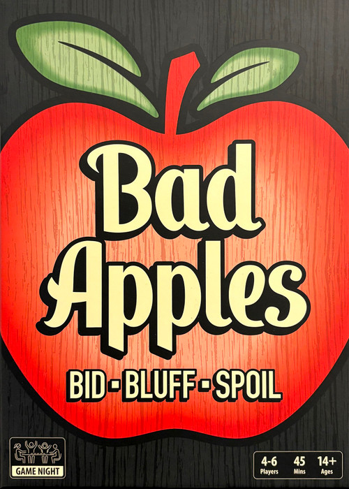 The goal of Bad Apples is to be the player with the most points after ten rounds. Each player starts with a set of apples and bidding tokens. The numbers on the apples represent the point values. Each round, every player discretely puts one of their apples into the burlap sack. These apples will be collectively auctioned off to the highest bidder.