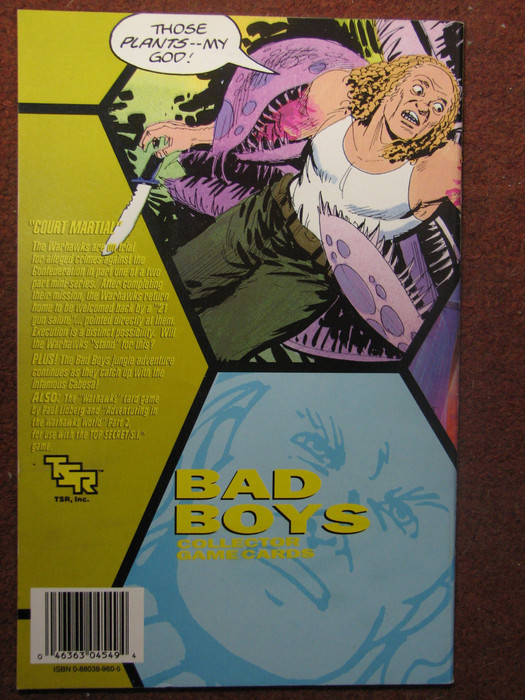 It consists of a deck of 24 cards depicting characters, places, and objects from "Bad Boys," the backup feature in the Warhawks book. These are used to play two games, one (not given a separate title) which is rummy-like, and one, The Hunt for El Presidente, which is similar to Old Maid.