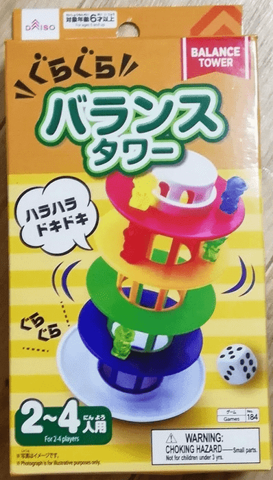 Gameplay: Players take turns rolling a die and placing their figurines on the corresponding colored levels of the tower. If the tower wobbles and figurines fall off during a player's turn, that player is responsible for picking them up.