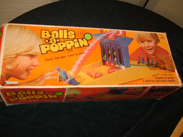 Action dexterity game where the players shoot balls towards a goal "ala Gnip Gnop" but attempt to get four in a row of their color either vertically, horizontally or diagonally "ala connect four".