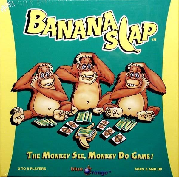 Banana Slap is a wacky game that will have everyone jumping up and down like monkeys! When two cards match, the goal is to be the first to slap the banana. If you lose, then you have to do what the monkey's do on each card- scratch your head, jump up and down, and more! Different cards give you different ways of going bananas and making you and your friends howl with laughter. The person who collects the most cards wins the game.