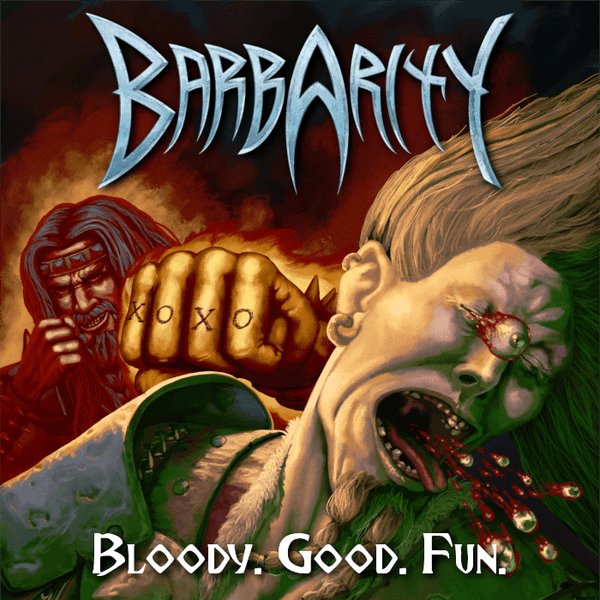 Barbarity is a competitive card adventure game themed around barbarians in popular culture, such as Robert E. Howard stories, and '80's sword and sorcery films and comics. It's very brutal and gory, but played for laughs, and has plenty of easter eggs referencing the films and stories it's based upon.