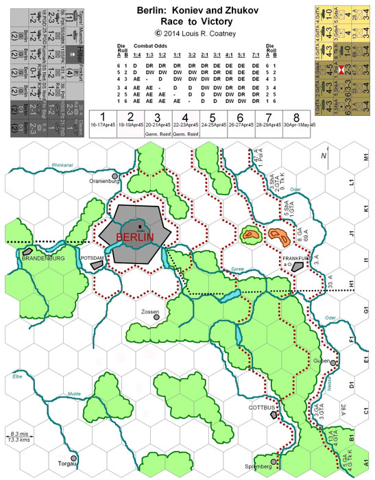 A small-format game using an even simpler Ardennes Petite and Patton's Lorraine Minigame game system, Race to Victory has 17 Russian and 1 Polish armies and korps and 20 German units of various types. 8 2-day turns.