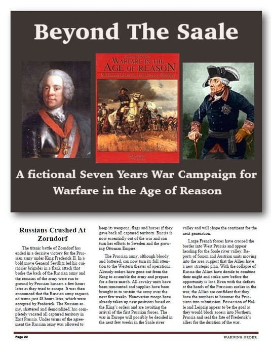 Although designed to use the campaign system in the Warfare in the Age of Reason supplements, gamers could basically use any campaign system that they want.