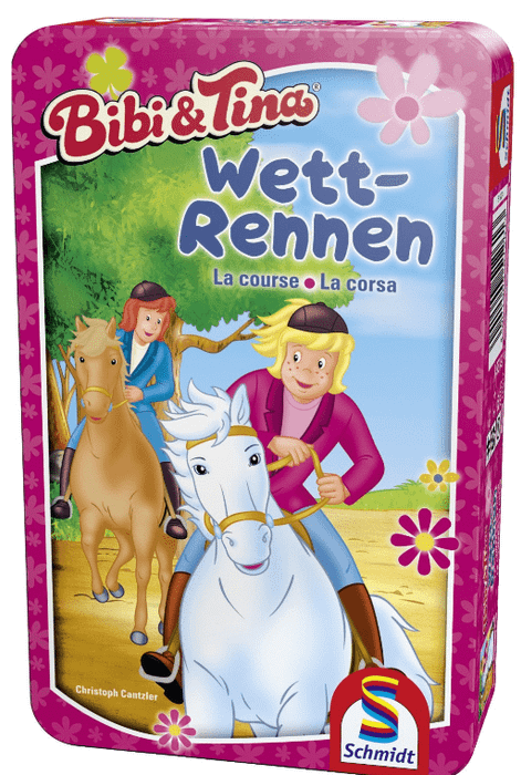 Two friends are riding their horses to a tree and back, trying to collect berries on the way. Essentially, this is a roll and move game for young kids. However, the player first place a hidden bet on the winner, and they can move either of the two riders as far as their die roll commands. When a rider reaches the farm again, anyone who had placed the right bet receives points; additional points are gained through picking up berries. The player with most points is the winner.