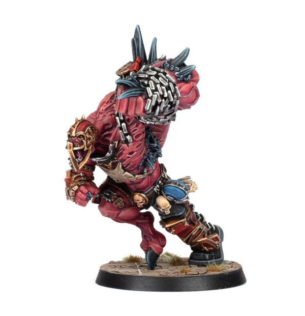 The Blood God gifts his most dedicated slaughterers with mutations that better enable them to kill in his name. A Bloodspawn is especially 'blessed' in this manner, having become horribly swollen and distorted with Khorne's murderous power. Huge, bulging muscles, razor-sharp bone spurs, vicious talons, and more are the hallmarks of a Bloodspawn. When one is herded onto a pitch and unleashed in all its destructive glory, the ensuing carnage can turn the stomach of even the most bloodthirsty fans.