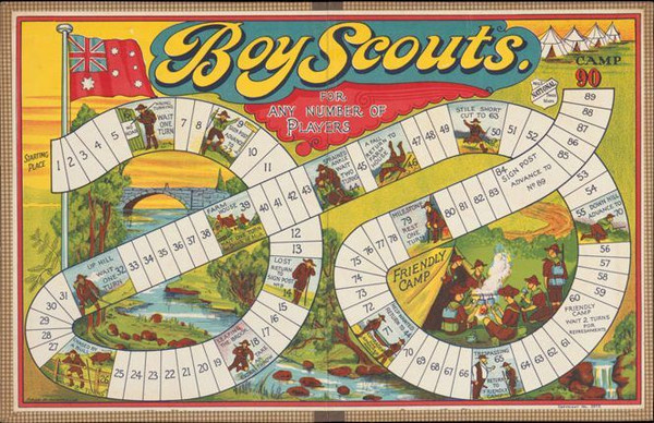 Boy Scouts is an Australian patriotic game first registered in 1911 by the National Game Company. Subsequent later versions appeared until around the 1930s.
