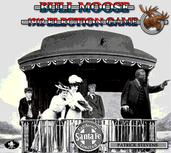 Bull Moose is a U. S. presidential election game based on the 1912 election. The split in the Republican party resulted in Teddy Roosevelt launching the Progressive Party. Concurrently the Socialists under Eugene Debs had their best showing to date. The Prohibitionists fielded Eugene Chaffin running only seven years prior to the passing of the 18th Amendment (prohibition). This resulted in a five-way race in which the Democrats actually won and the third party, the Progressives came in second.
