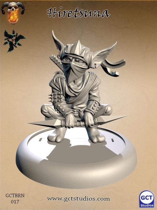 Hiretsuna is an oddity amongst the Bakemono, selected by the Council of Shadows at a young age and marked for greatness. The Council have invested heavily in Hiretsuna and when the Kage Kaze Zoku agreed to train him their plans moved one step forward. His race’s natural affinity for subterfuge combined with his practiced skills make him also impossible to stop, he is able to strike with pinpoint accuracy where his opponent can least afford.