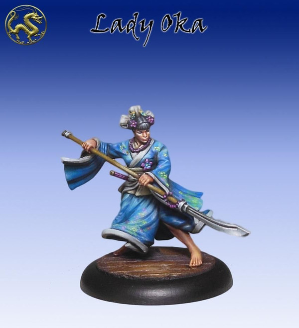 Lady Oka is as deadly as she is beautiful. Raised in the luxury of Ryu she is a great power in the court and has learned to use the weapons gifted to her just as expertly as those crafted of polished steel and lacquered wooded in the dojo. A nimble and dexterous warrior she wields the traditional weapon of a lady of the samurai caste, with a natural ease and elegance. She moves across the battlefield with the poise and grace of a dancer, avoiding blows and missiles as if they were not even there.