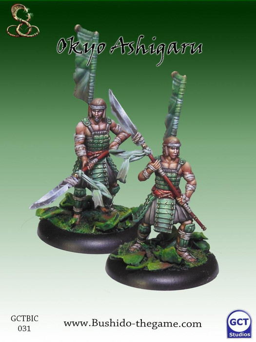 Ashigaru are the mainstay of the houses of Jwar, making up the bulk of all the major and minor clans’ military forces. As one would expect they personify the teachings and martial practices of their lords. The Bear are strong and tough, the Dragon, drilled and brave and the Snake cowardly but cunning. Using their numbers to their advantage when fighting as a unit they are a formidable foe.