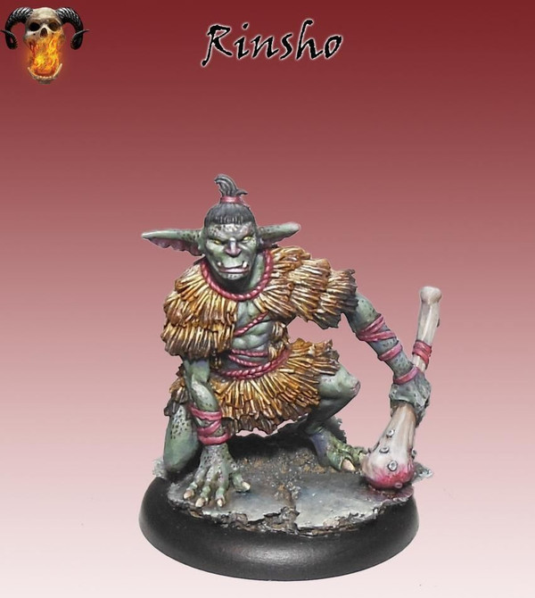 Rinsho are prized within Bakemono society for their enormous strength matched only by their stupidity, making them perfect shock troops. These gangly Bakemono are blessed with vastly accelerated regenerative powers, able to regrow limbs and heal what would be mortal wounds as if minor graze. Their durability offers some staying power to the Bakemono battle lines, anchoring key points on the battle field, weathering the brunt of the enemy offense and enabling a swarming counter punch. Bringing down these giant Bakemono is no mean feat as injury only sends them spiralling into a furious whirlwind and violence.