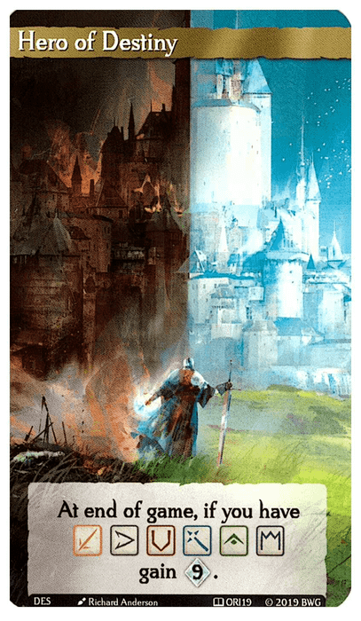 At end of game, if you have Strength, Dexterity, Constitution, Intelligence, Wisdom, and Charisma, gain 9 Triumph.
