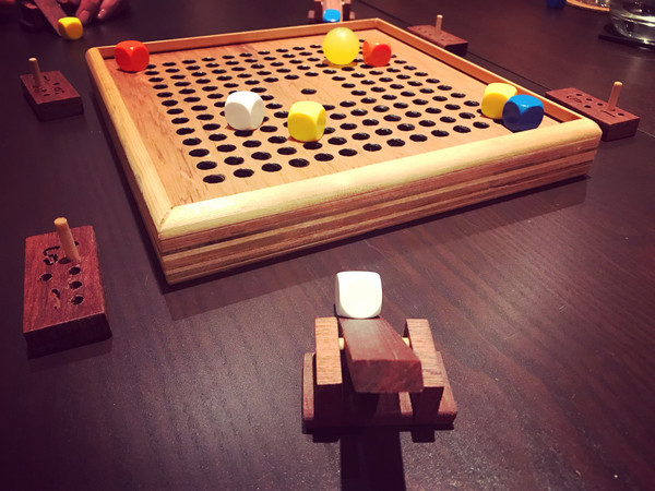 In Carreau you score points for flipping your cubes closest to the target ball. The flipping action takes some practice but once you get the knack of it you can be quite accurate.