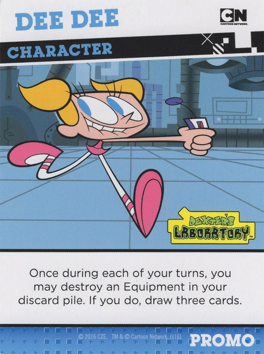 As with every other character, Dee Dee grants a special ability to the player, which in this case is: "Once during each of your turns, you may destroy an Equipment in your discard pile. If you do, draw three cards"