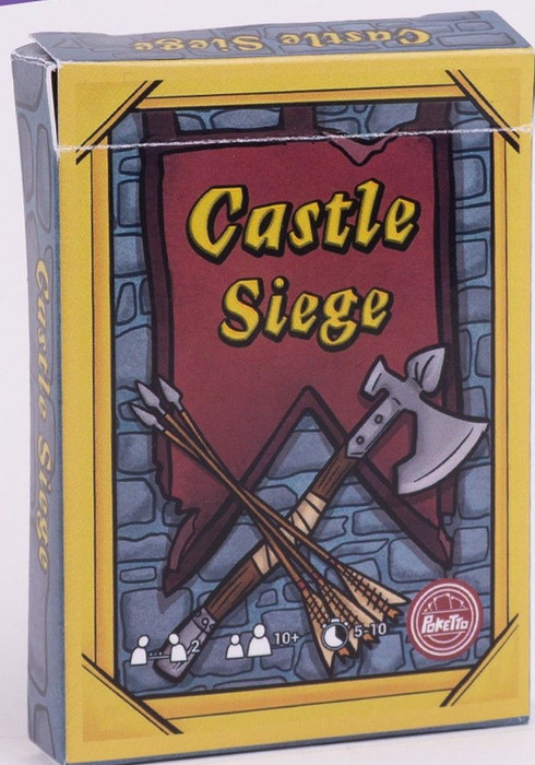 Castle Siege is a 1-2 player handheld play tower defense card game. In it, each player arranges their entire castle between the fingers of one hand, beginning with just the castle keep. From there, the players play cards to add towers, or to attack their opponents castle with archers, battering rams, explosives, and trolls. Play proceeds with towers and attackers taking damage until one player's keep is destroyed.