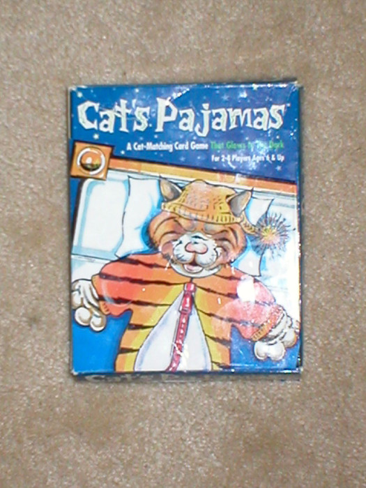"Time for beddie-bye! Have no fear, even at night, when the lights are off, you can play a game of Cat's Pajamas because the cards GLOW IN THE DARK!