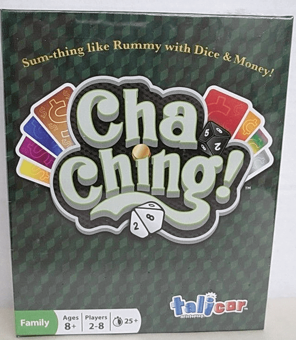 Cha-Ching gives you the rush of rummy with a blend of dice for added SPICE! Players attempt to build an eight card hand to equal the sum of the house number rolled each round from various cards values. But players can cha-change things up mid play with CHACHING! Cards that allow you to re-roll the dice or trade hands with another player but don’t get caught trying to change things up before someone goes out each round.