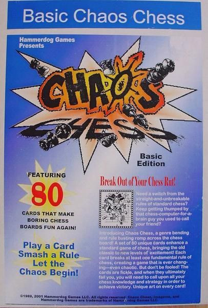 This is a set of 80 cards that change all the rules of chess. The cards range from permanent changes to "instants" to durational cards. It adds an element of luck to a game that never had any. However, most the cards are not over-powerful and your knowledge of chess will help you quite a bit. The game is still Chess at its core. Each card has its own art and flavor text, both of which are very well done. You will probably want some extra tokens beyond the initial 8 that are supplied. You will use tokens a lot in this game.