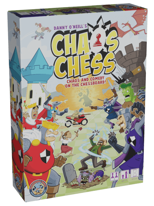Chaos Chess is a genre-mashing game that turns a common chessboard into a dynamic and exciting board game. The core rules of the game remain, but humorous cards allow players to break the rules of chess to do fantastic stuff like