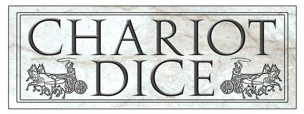 Each chariot consists of two dice, representing the speed and health of the chariot. Every turn players must decide between speeding up, slowing down, or attacking. The faster you go, the greater you risk uncontrolled movement. Players must navigate the track to avoid running up against the walls, crashing into other players or running over debris from previous races. The goal is to be the first to make it to the finish line, but in some races this will simply mean being able to survive to the end.