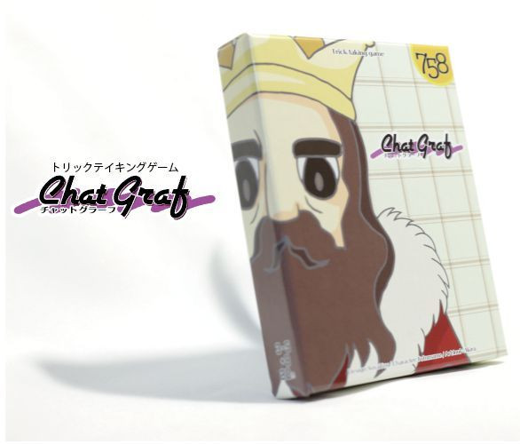 ãã£ããã°ã©ã¼ã (Chat Graf) is a trick-taking game where players use the the art of conversation in response to the strange official declarations of the king, in order to split the rewards between themselves. A single card contains two numbers with two numerical values. Use the different numerical values for two consecutive tricks.