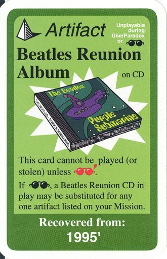 If not flipped, a Beatles Reunion CD in play may be substituted for any one artifact listed on your mission"